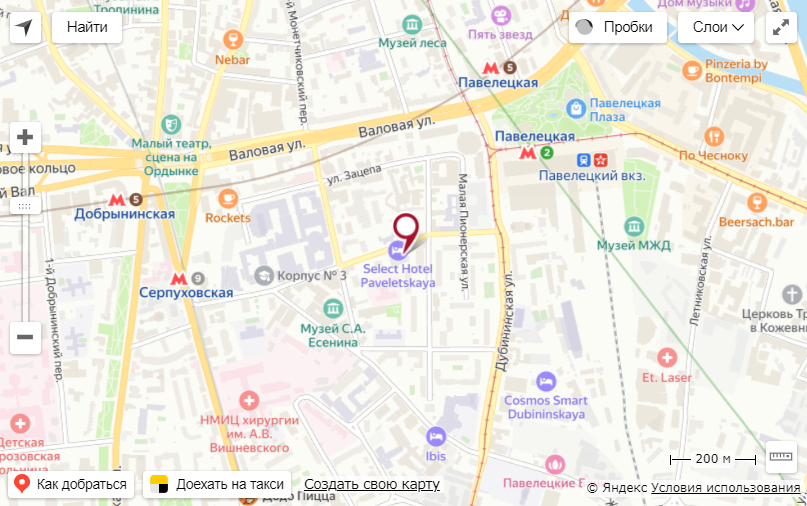 Проживание по специальному предложению можно забронировать в отеле "Select Hotel Paveletskaya", который находится по адресу: